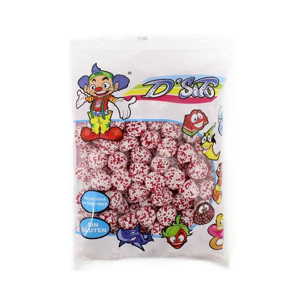More Panna e Fragola caramelle gommose more bianco rosse, D'Sito, in busta da 1Kg: gommose a forma di more ricoperte con mompariglia di colore bianco rosse