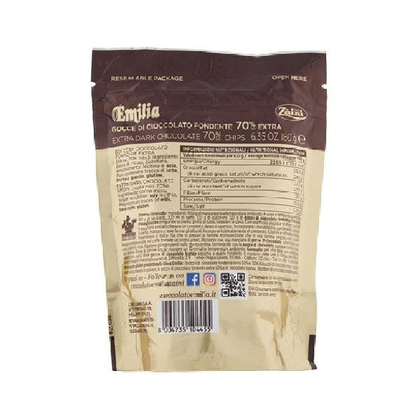 Caratteristiche gocce di cioccolato Emilia fondente extra: