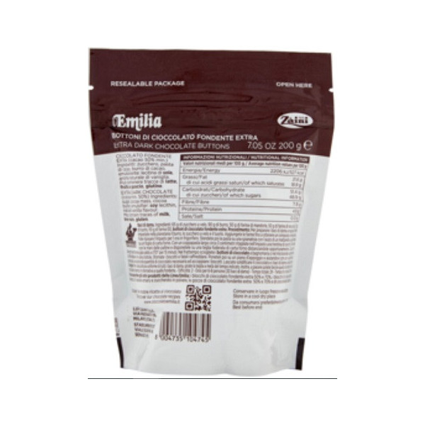 Bottoni di Cioccolato Emilia fondente extra in busta da 200 g da Zaini.