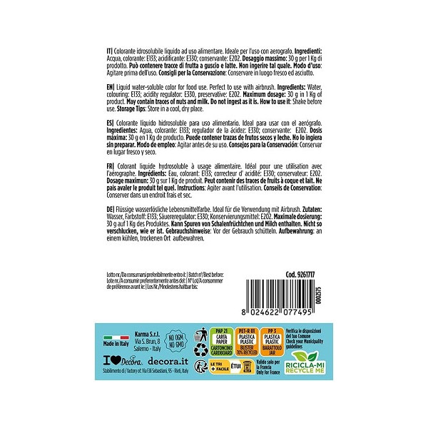 Caratteristiche colorante idrosolubile azzurro Decora: