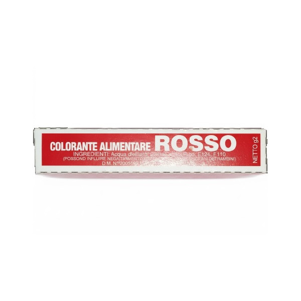 Colorante rosso liquido alimentare, idrosolubile, in fiala con astuccio da 2 g, monodose, ideale per panna, ghiaccia reale, creme, marzapane ed impasti per biscotti, dolci e torte.