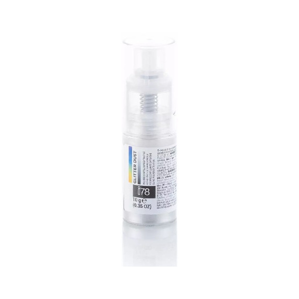 Glitter Dust Silver da 10 g: colorante Spry Glitterato Argento in Polvere Scintillante Extra-fine con pompetta ad aria, dalla linea i78 di Silikomart.
