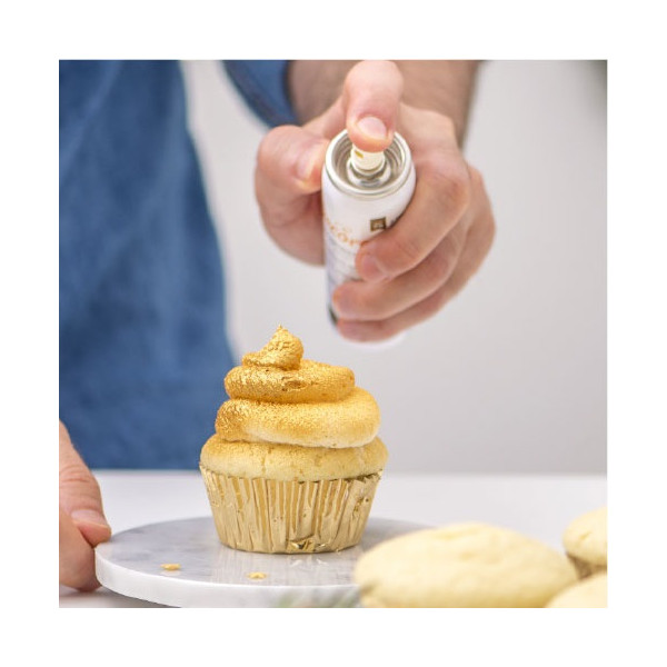 Colorante alimentare spray effetto metallizzato colore oro da Decora da 75 ml. Ideale per per colorare e decorare pasta di zucchero, pasta di gomma e cioccolato.