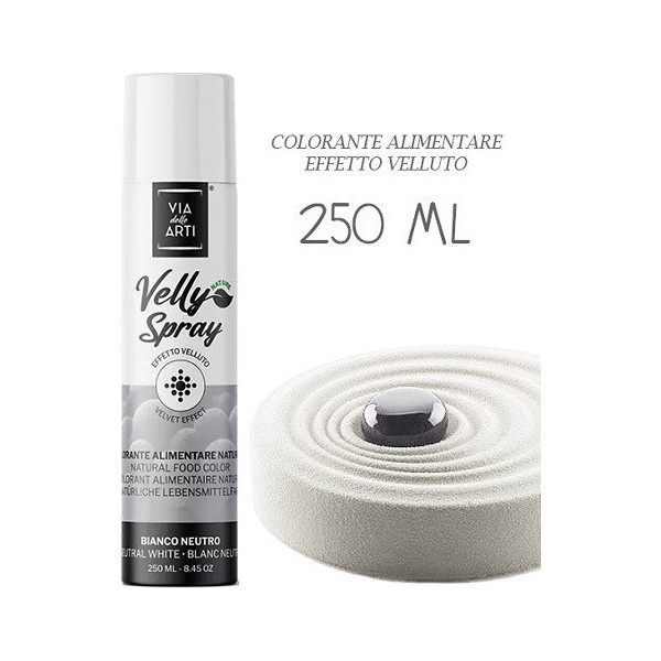 Velly Natural White Neutral da 250 ml di Via delle Arti da Volcke Aerosol: colorante naturale spray color bianco neutro naturale effetto velluto, uso alimentare, con burro di cacao, ideale per decorare preparazioni e superfici congelate