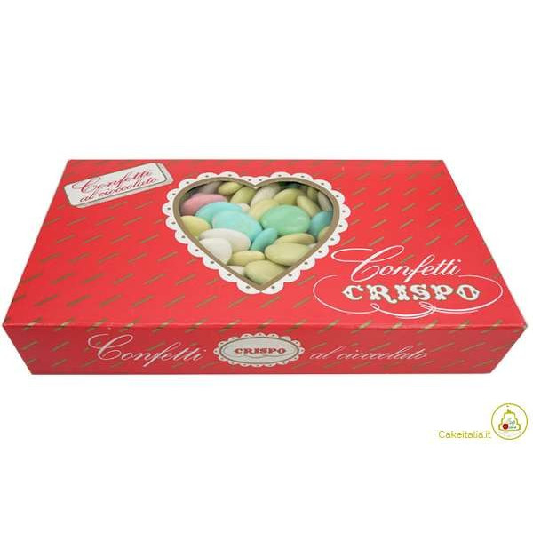 1 Kg confetti Colori Assortiti al Cioccolato Crispo: un cuore di cioccolato fondente confettato e colorato in confezione da 1 Kg Crispo. Confetti colorati al cioccolato ideali per compleanno.