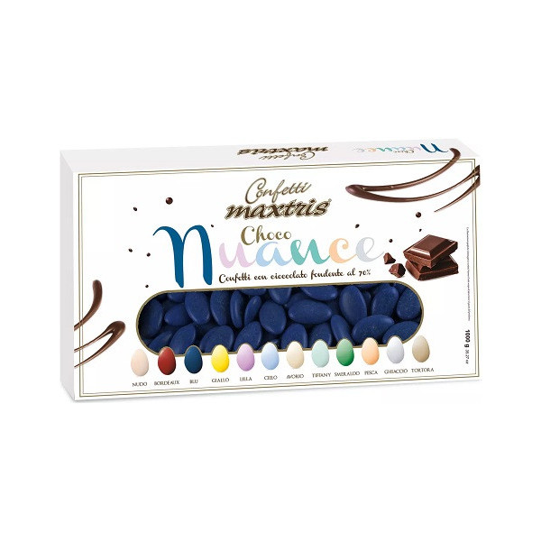 Caratteristiche confetti Choco Nuance Blu al cioccolato fondente 70% Maxtris: