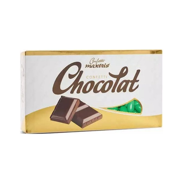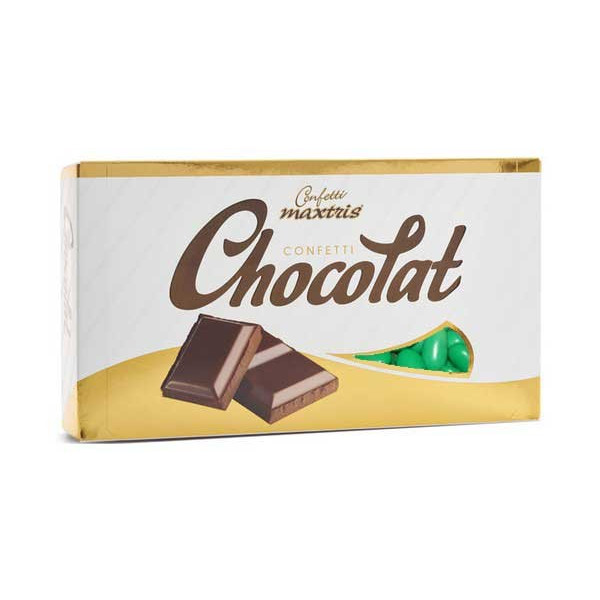 Confetti classici al cioccolato fondente da Maxtris verdi in confezione da 1 Kg. Confetti verdi ideali per confezionare sacchetti e bomboniere o per allestire una confettata.