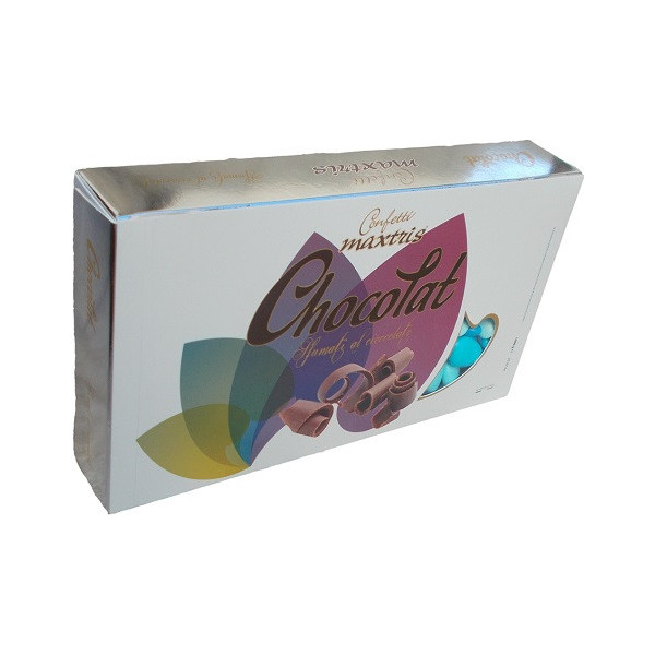 Confetti classici al cioccolato fondente da Maxtris celeste in confezione da 1 Kg. Confetti celesti ideali per confezionare sacchetti e bomboniere o per allestire una confettata.