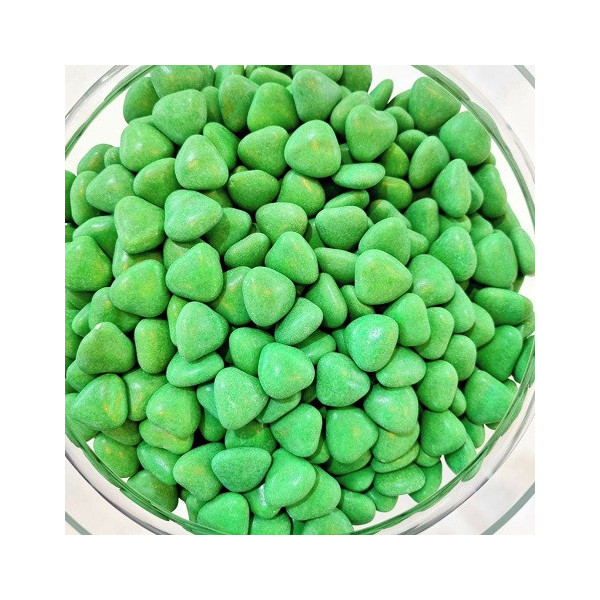 Confetti Très Amour Verde di Crispo: un cuore di cioccolato fondente, bianco e al latte, confettato color verde in confezione da 1Kg di Crispo