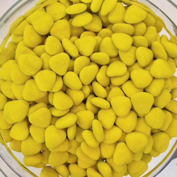 Confetti Très Amour Giallo Limone di Crispo: un cuore di cioccolato fondente, bianco e al latte, confettato color giallo limone in confezione da 1Kg da Crispo