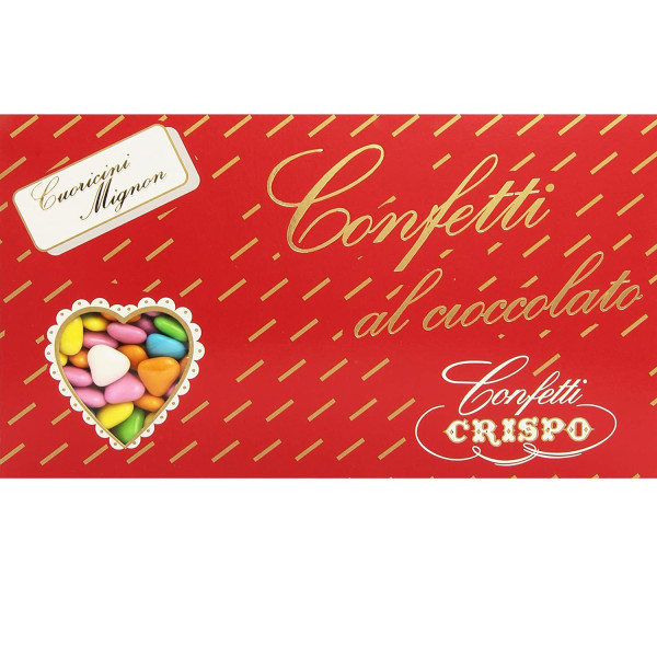Selection color cuoricini mignon rosso Crispo 500 g confetti rossi sfumati. Confetti piccoli cuori al cioccolato in 5 tonalità di rosso in confezione da 500 g.