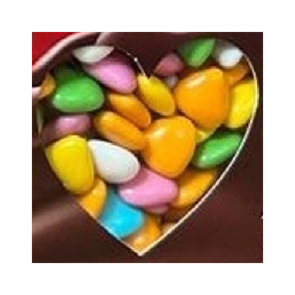 Amorini assortiti Crispo da 1 Kg; confetti a forma di cuore, al cioccolato fondente, in colori assortiti. Confetti in colori assortiti ideali per confettata.
