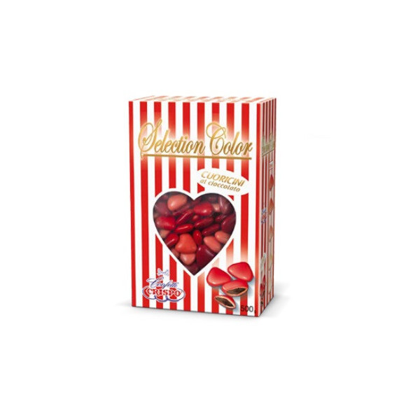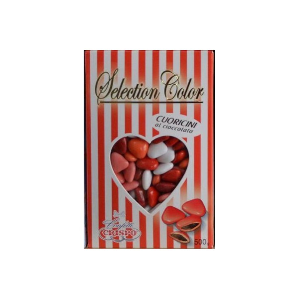 Selection color cuoricini mignon rosso Crispo 500 g confetti rossi sfumati. Confetti piccoli cuori al cioccolato in 5 tonalità di rosso in confezione da 500 g.