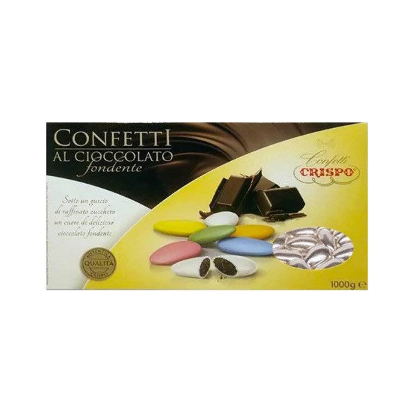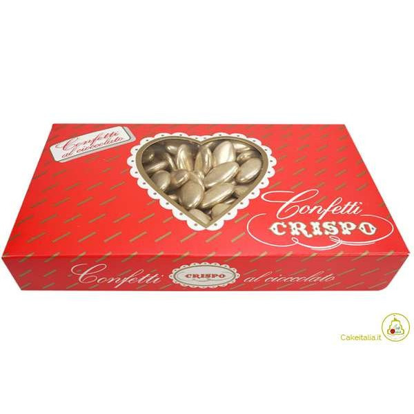 Confetti oro al cioccolato fondente Crispo 1 Kg: un cuore di cioccolato fondente confettato oro in confezione da 1 Kg Crispo. Confetti oro al cioccolato ideali per comunione e anniversario matrimonio.