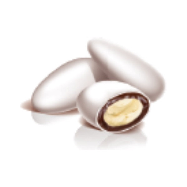 Confetti bianchi con cioccolato bianco al gusto di crema arancia e zenzero, ricoperti di cioccolato al latte.