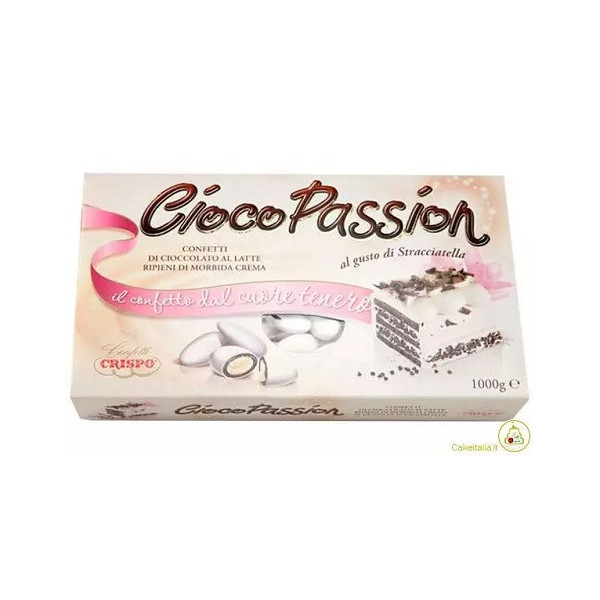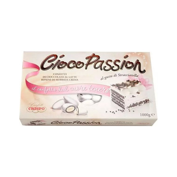 Ciocopassion stracciatella di Crispo da 1 Kg: confettati bianchi di cioccolato al latte ripieni di crema al gusto stracciatella. Confetti Crispo ideali per confettata