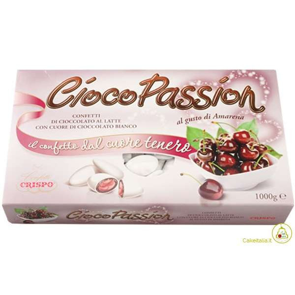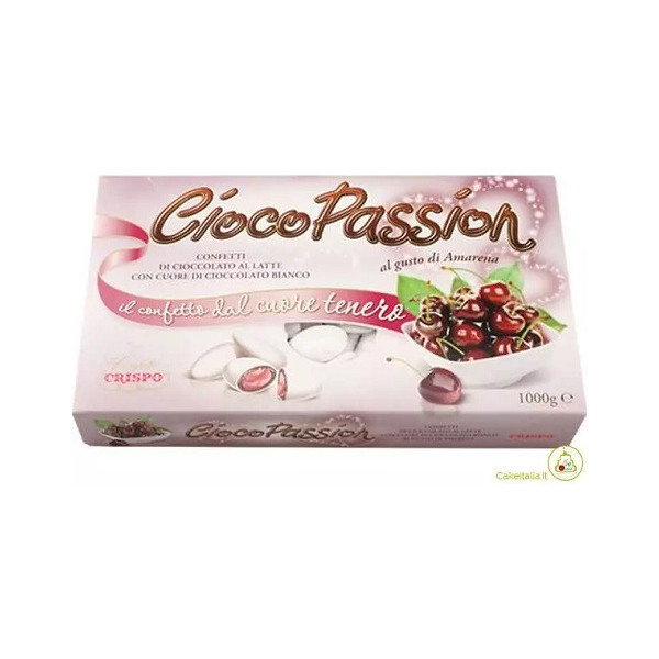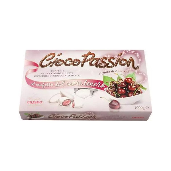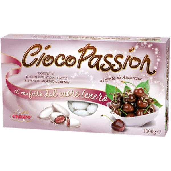 Ciocopassion amarena confetti bianchi da 1 Kg di Crispo: confetti Ciocopassion con cioccolato al latte ripieni di crema al gusto amarena ideali per confettata Crispo