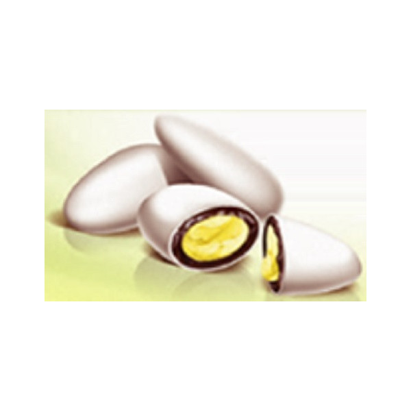 Confetti Ciocopassion Crispo, confetti bianchi al cioccolato al latte con cuore di cioccolato bianco al gusto di delizia al limone, in confezione da 1000 g.