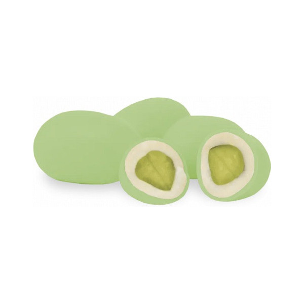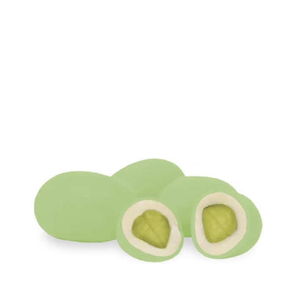 Ciocopistacchio Verde Maxtris da 500 g: un cuore di pistacchio tostato ricoperto di cioccolato bianco e confettato da un sottile strato di zucchero, ideali per cerimonia.