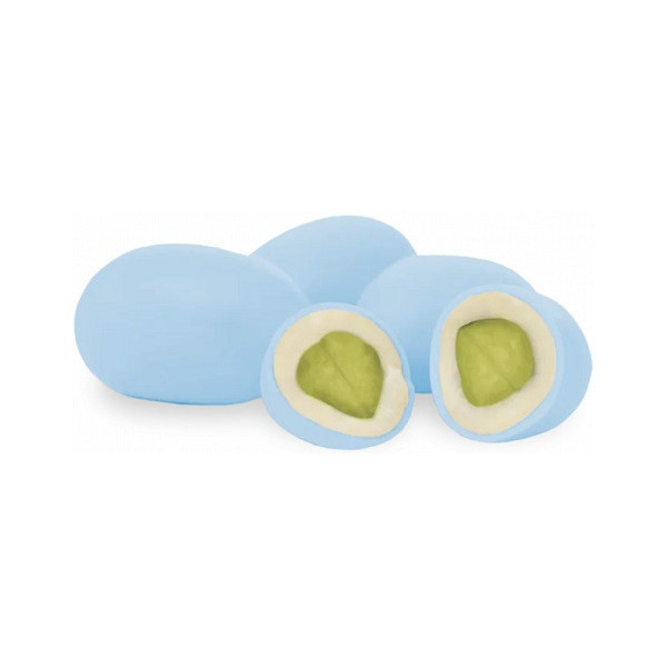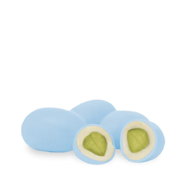 Ciocopistacchio Celeste Maxtris confetti celesti da 500 g: un cuore di pistacchio tostato ricoperto di cioccolato bianco e confettato da un sottile strato di zucchero, ideali per cerimonia.