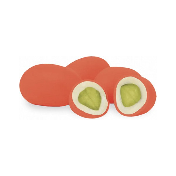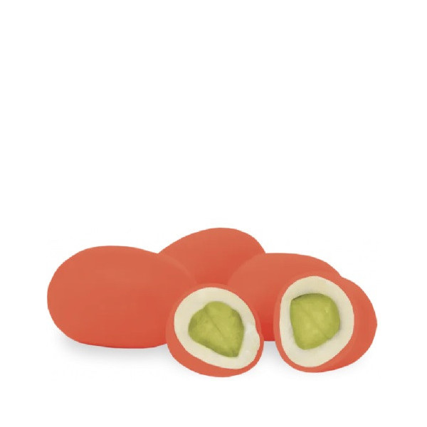 Ciocopistacchio Rosso Maxtris da 500 g: un cuore di pistacchio tostato ricoperto di cioccolato bianco e confettato da un sottile strato di zucchero, ideali per cerimonia.