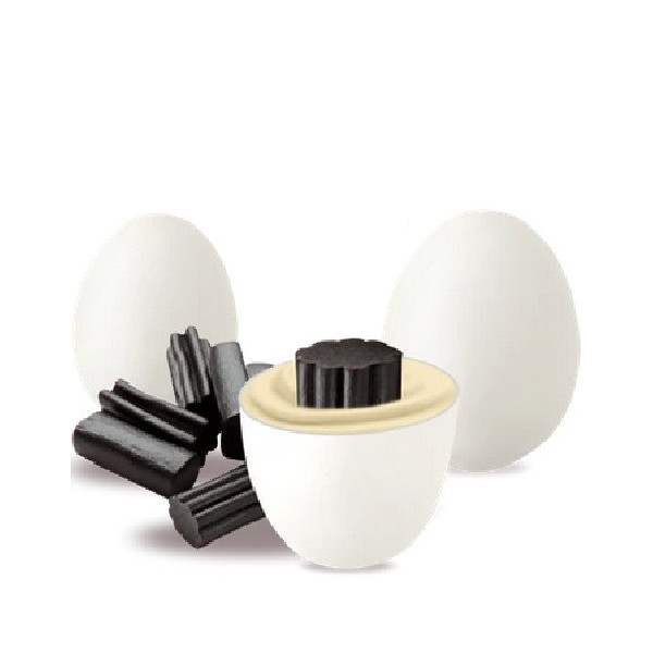 Ripieno: cioccolato bianco aromatizzato a Liquirizia