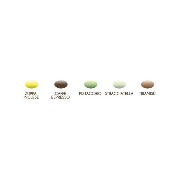 Confetti con mandorla tostata ricoperta da cioccolato fondente e bianco aromatizzato ai gusti pasticceria assortiti ed incartati singolarmente