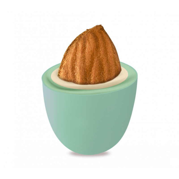 Confetti verdi, ciocomandorla, al gusto torta ricotta e pera.