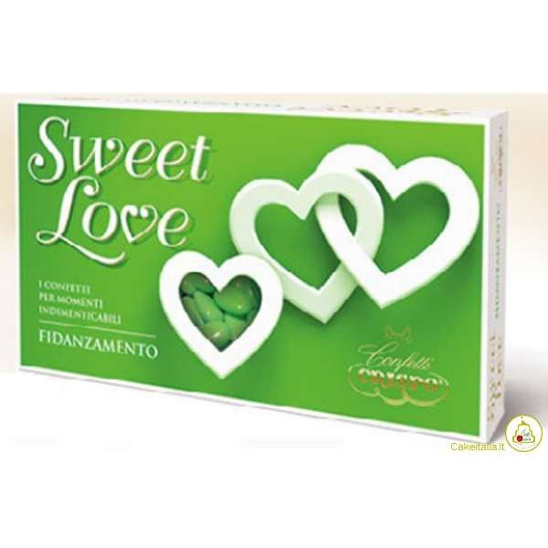 Confetti Verdi a mandorla extra pelata da 1 Kg i Sweet Love di Crispo: mandorla extra pelata confettata verde ideali per promessa di matrimonio o fidanzamento.