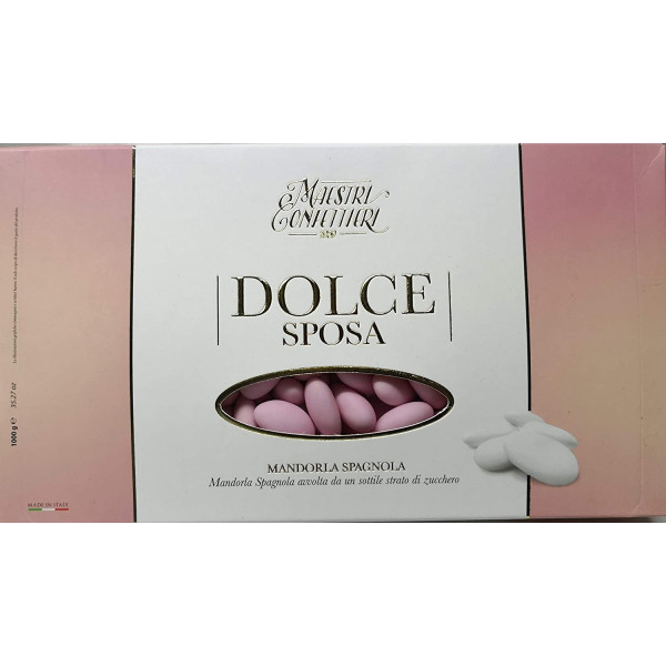 Confetti Maxtris Dolce Sposa Gold Rosa 1 kg: confetti alla mandorla spagnola pelata, ricoperta da un sottile strato di zucchero color rosa. Confetti senza glutine.