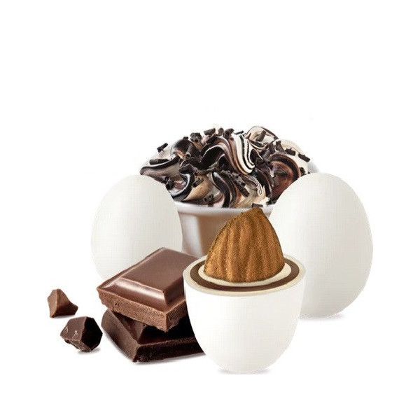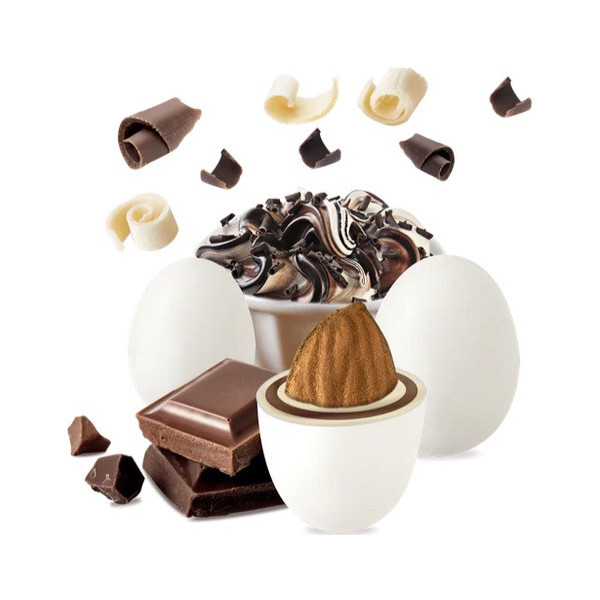 Maxtris Affogato al Cioccolato, confetti bianchi da 1 Kg: mandorla tostata ricoperta da cioccolato bianco e al latte e da un sottile strato di zucchero. Confetti ideali per confettata.