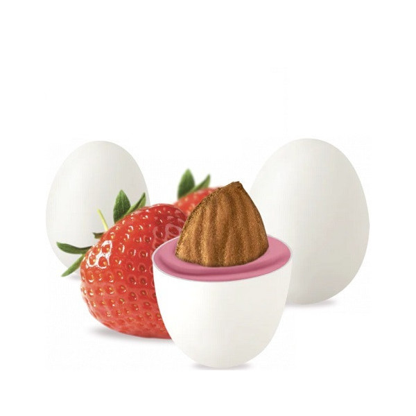 Confetti cioc-omandorla con mandorla tostata ricoperta da cioccolato bianco gusto fragola e da un sottile stato di zucchero.