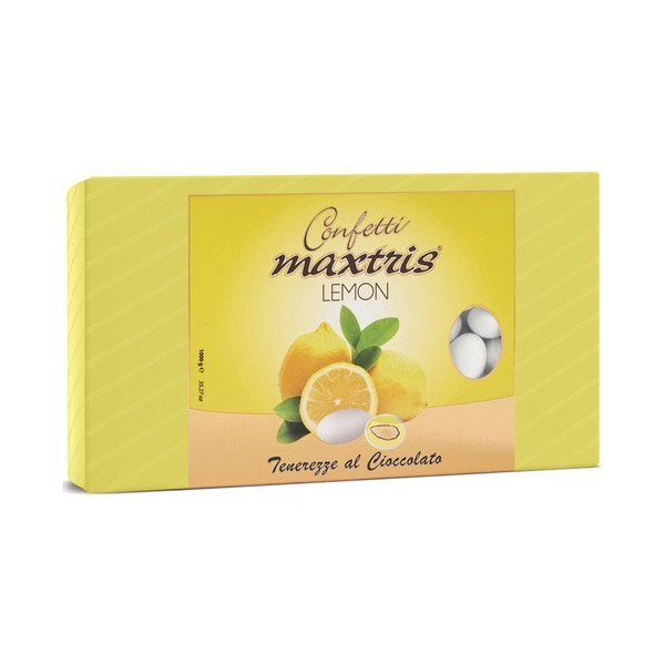 I confetti al limone Maxtris, sono confetti bianchi ciocomandorla al gusto frutta.