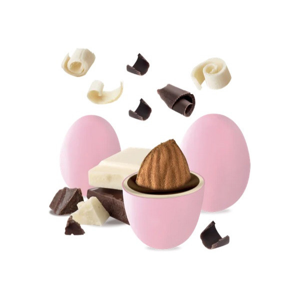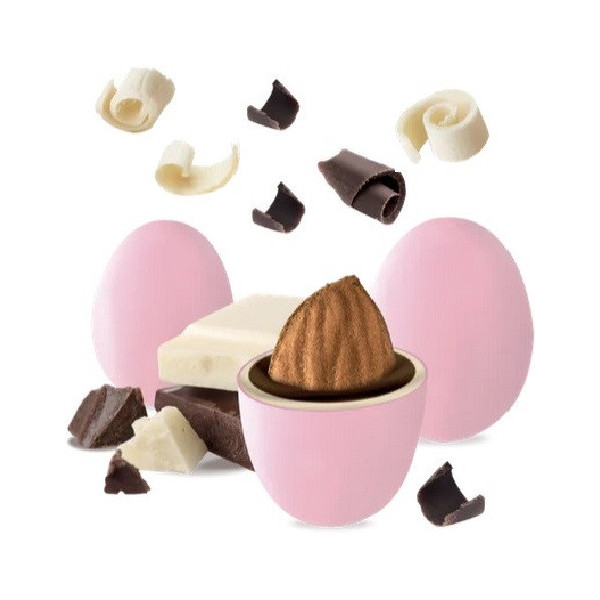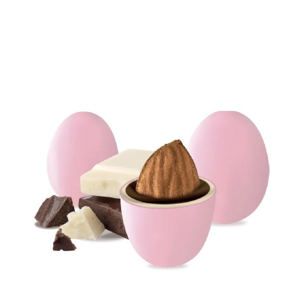 Maxtris Classico Rosa, confetti rosa da 1 Kg: mandorla tostata ricoperta di cioccolato fondente e bianco. Confetti cioco-mandorla ideali per confettata a tema rosa.