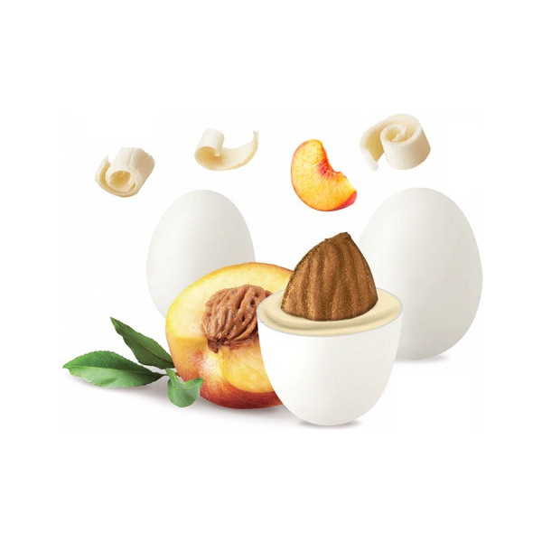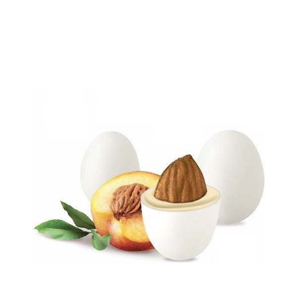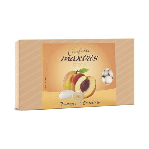 Maxtris Pesca confetti bianchi 1 Kg: mandorla tostata ricoperta da cioccolato bianco al gusto di pesca e da un sottile strato di zucchero. ideali per confettata