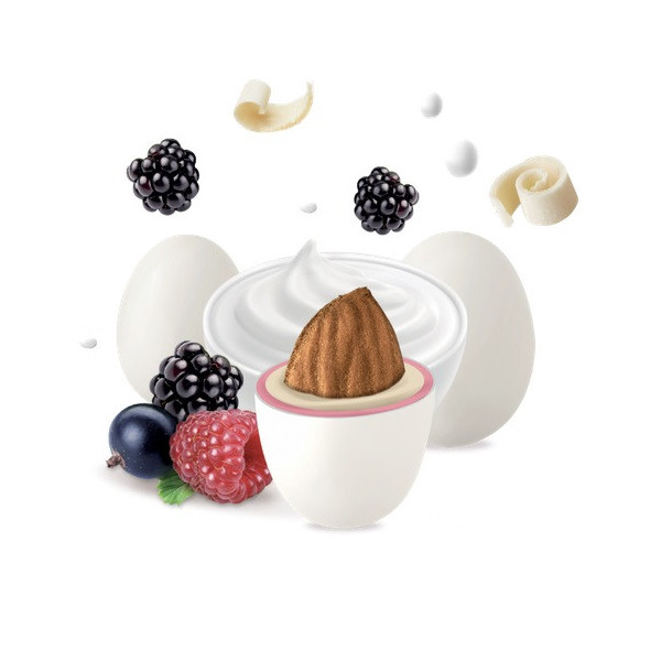 Ripieno: cioccolato aromatizzato allo Yogurt ai Frutti di Bosco