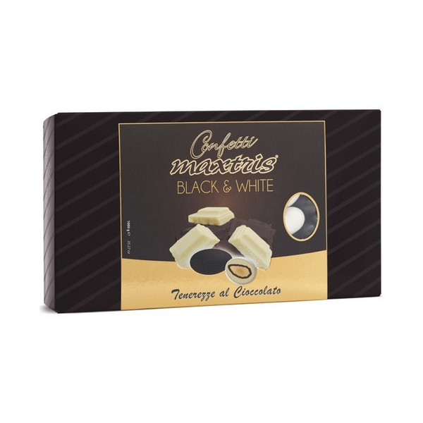 Classico Maxtris bianchi e neri - black & white 1 Kg: mandorla tostata ricoperta da cioccolato fondente e bianco e da un sottile strato di zucchero. Confetti ideali per confettata