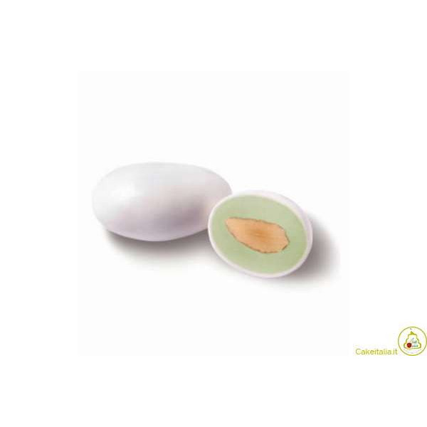Maxtris Anguria confetti bianchi 1Kg: mandorla tostata ricoperta da cioccolato bianco al gusto di anguria e da un sottile strato di zucchero, ideali per confettata