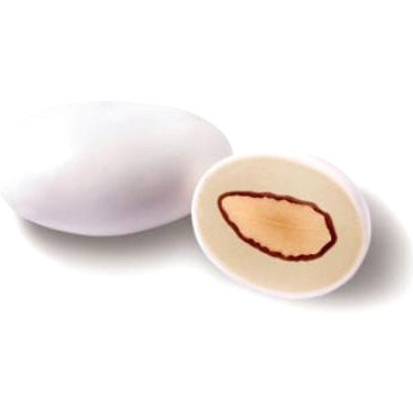 Maxtris Anguria confetti bianchi 1Kg: mandorla tostata ricoperta da cioccolato bianco al gusto di anguria e da un sottile strato di zucchero, ideali per confettata