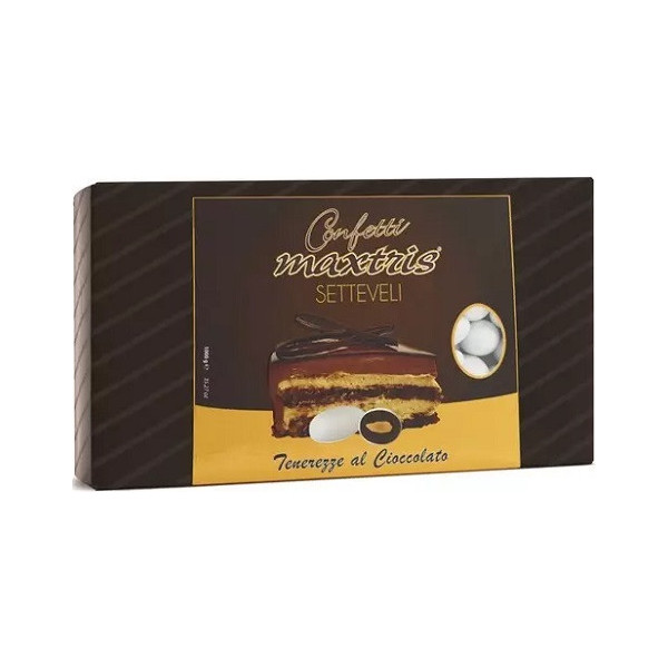 Maxtris Setteveli confetti bianchi 1 Kg: mandorla tostata avvolta con cioccolato bianco e fondente al gusto torta Setteveli, ricoperta di zucchero. Confetti bianchi ideali per confettata