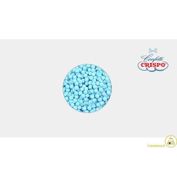 Mimose celesti Crispo da 400 g: piccoli ricci di zucchero celeste, dal peso 400 g, diametro 10 mm circa ideali per decorazioni sacchetti, confettata o bomboniera.
