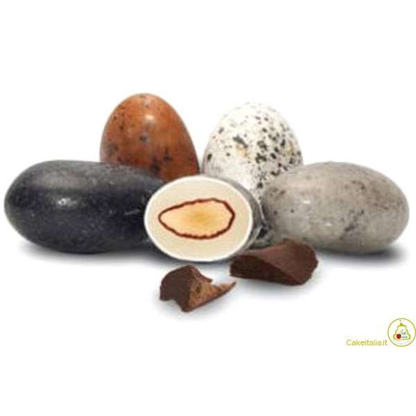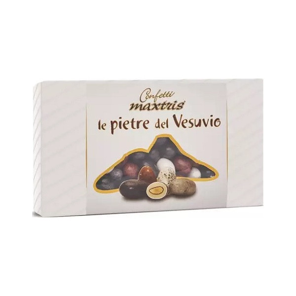 Confetti Maxtris Le Pietre del Vesuvio da 1 Kg: confetti Classici Pietre del Vesuvio, con mandorla tostata ricoperta con cioccolato fondente e bianco e confettata