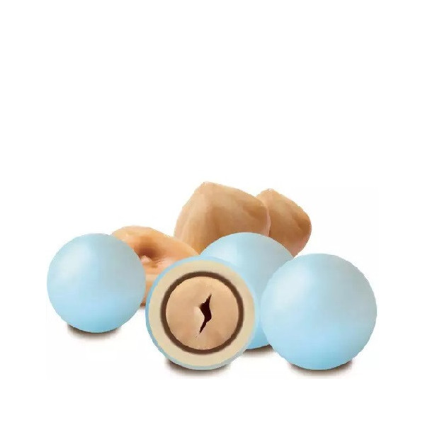 Les Noisettes Celeste confetti celesti Maxtris, tondi alla nocciola, da 1 Kg: nocciola tostata ricoperta da cioccolato fondente e bianco e da un sottile strato di zucchero di colore celeste