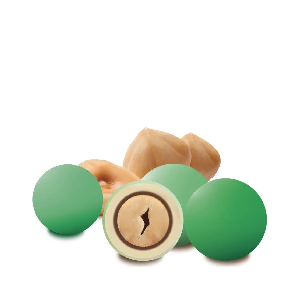 Les Noisettes Verde Maxtris: 1 Kg di confetti verdi e tondi, con nocciola tostata ricoperta di cioccolato bianco e fondente ideali per confetta fidanzamento o promessa