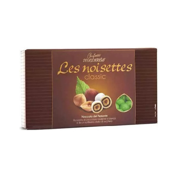Confetto alla Nocciola tostata avvolta di cioccolato bianco e fondente, ricoperta da un sottile strato di zucchero.