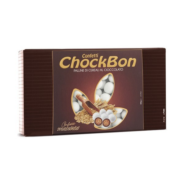 I Confetti Chock Bon Bianchi sono palline di Cereali al Cioccolato, avvolti da uno strato di cioccolato al latte e ricoperti da un sottile strato di zucchero.