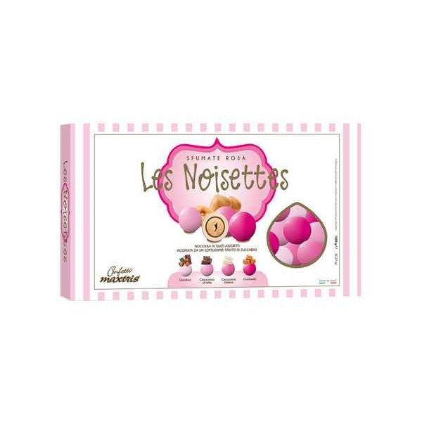 Les Noisettes Sfumate Rosa confetti Maxtris rosa sfumati 1Kg: confetti tondi rosa con nocciola tostata ricoperta di cioccolati assortiti ai gusti: gianduia, cioccolato al latte, cioccolato bianco e caramello