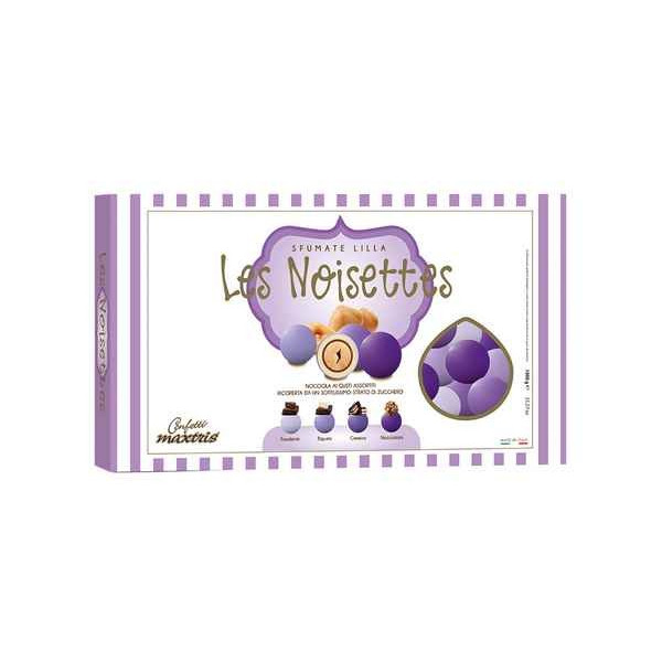 Les Noisettes Sfumate Lilla confetti Maxtris lilla sfumati 1Kg: confetti tondi lilla con nocciola tostata ricoperta di cioccolati assortiti ai gusti: gianduia, cioccolato al latte, cioccolato bianco e caramello