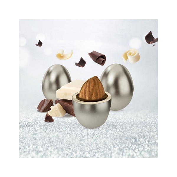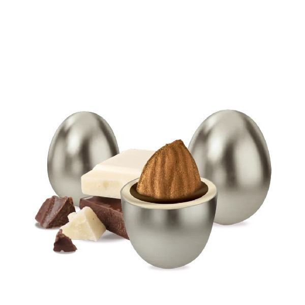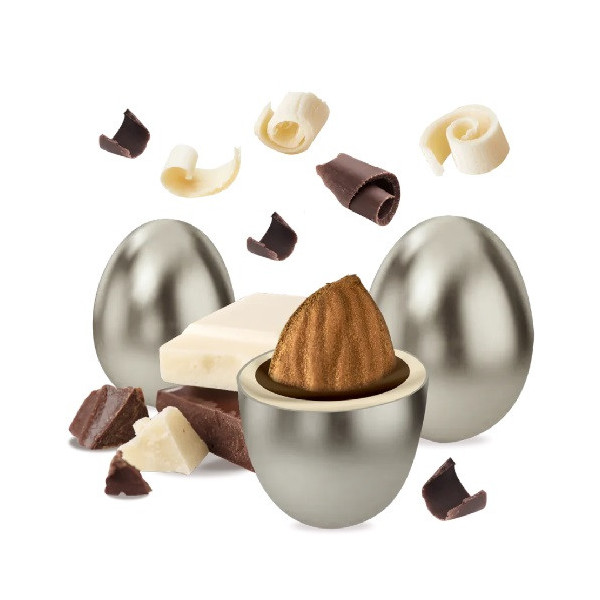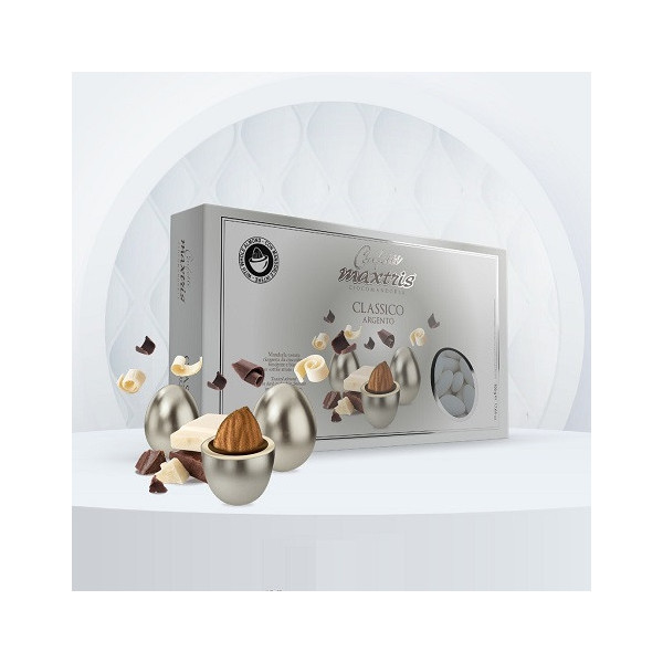 Maxtris Classico Argento confetti argentati 500 g: mandorla tostata ricoperta di cioccolato fondente e bianco. Confetti cioco-mandorla perfetti per sacchetti, la confettata e le tue bomboniere.
