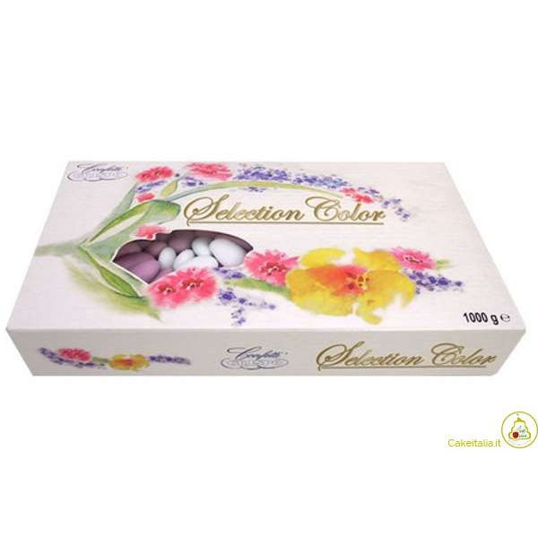 Confetti Selection Color Lilla per cerimonia alla mandorla, ricoperti da un soffice velo di zucchero profumato, in scatola Selection Color.